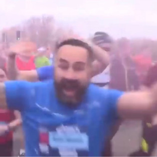 As we stand in the pen waiting to move forward towards the start line there are no nerves. We have One last check of our phone before setting it to flight mode and there’s a message from our youngest daughter telling us to ‘wave to the ASICS camera’ We try to work out which side is going to best and as we edge along nearer to the start we traverse across to the right hand side and we spot Cathy on the stage and give her a massive wave and cheer. And then we see the camera and wave excitedly.